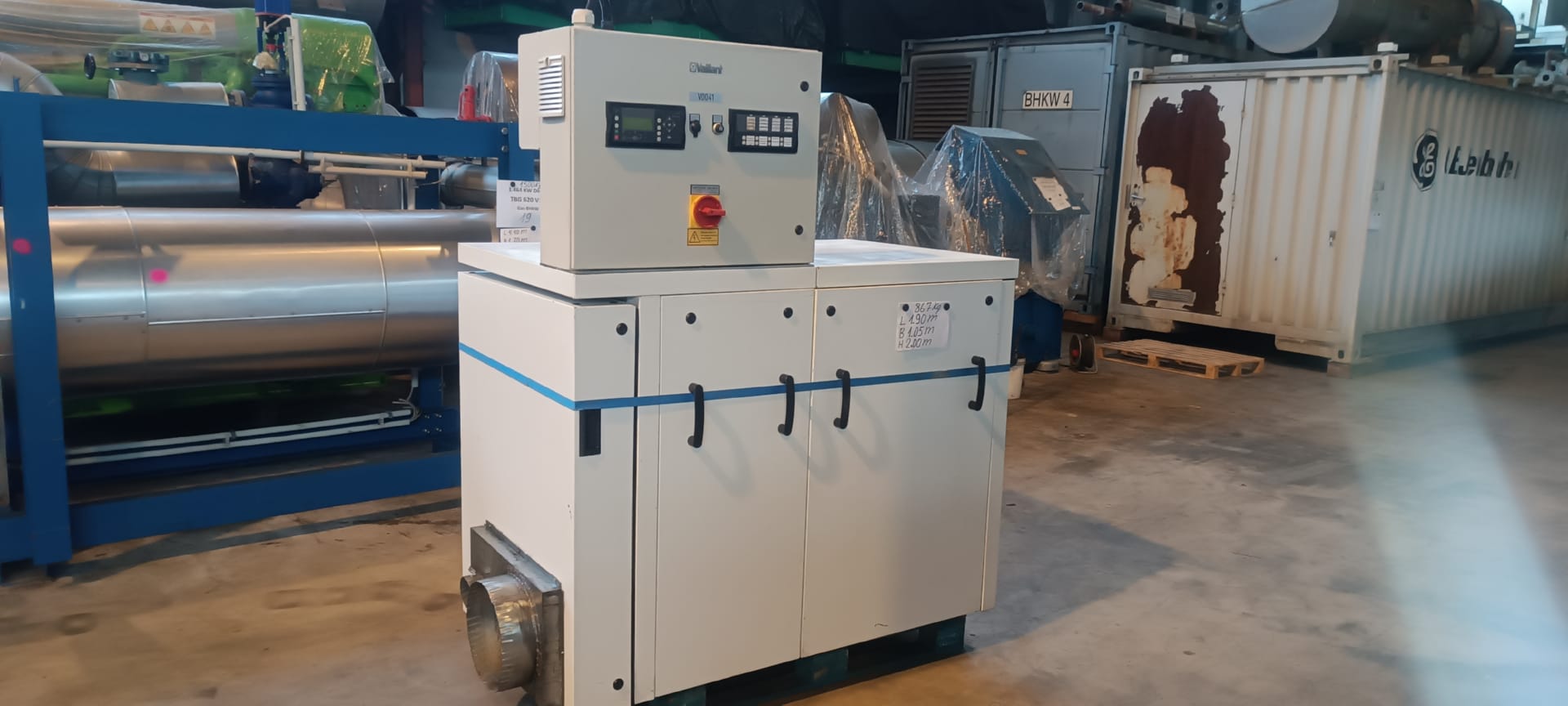 Gas Strom- und Wärmeerzeuger von 2015 mit unbekannten Betriebsstunden. 50 KWel x 1.500 U/min, 400 V/50 Hz. 7.900 €