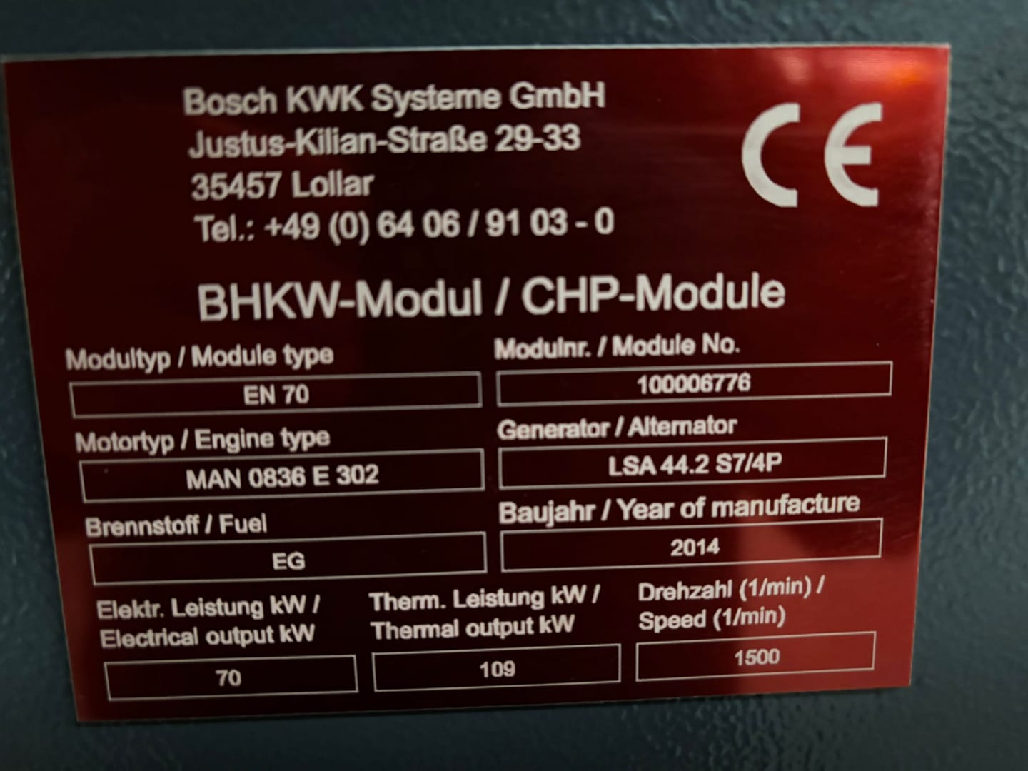 BHKW Buderus EN 70 MAN E0834 E302