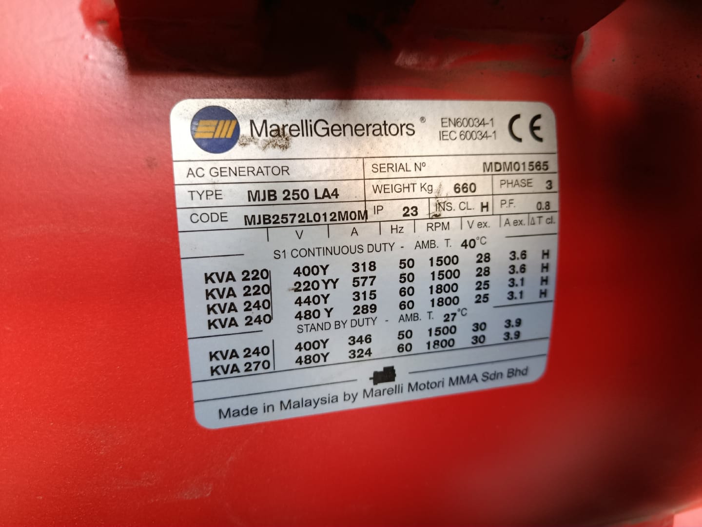 AC-Generator: MarelliGenerators MJB 250 LA4
