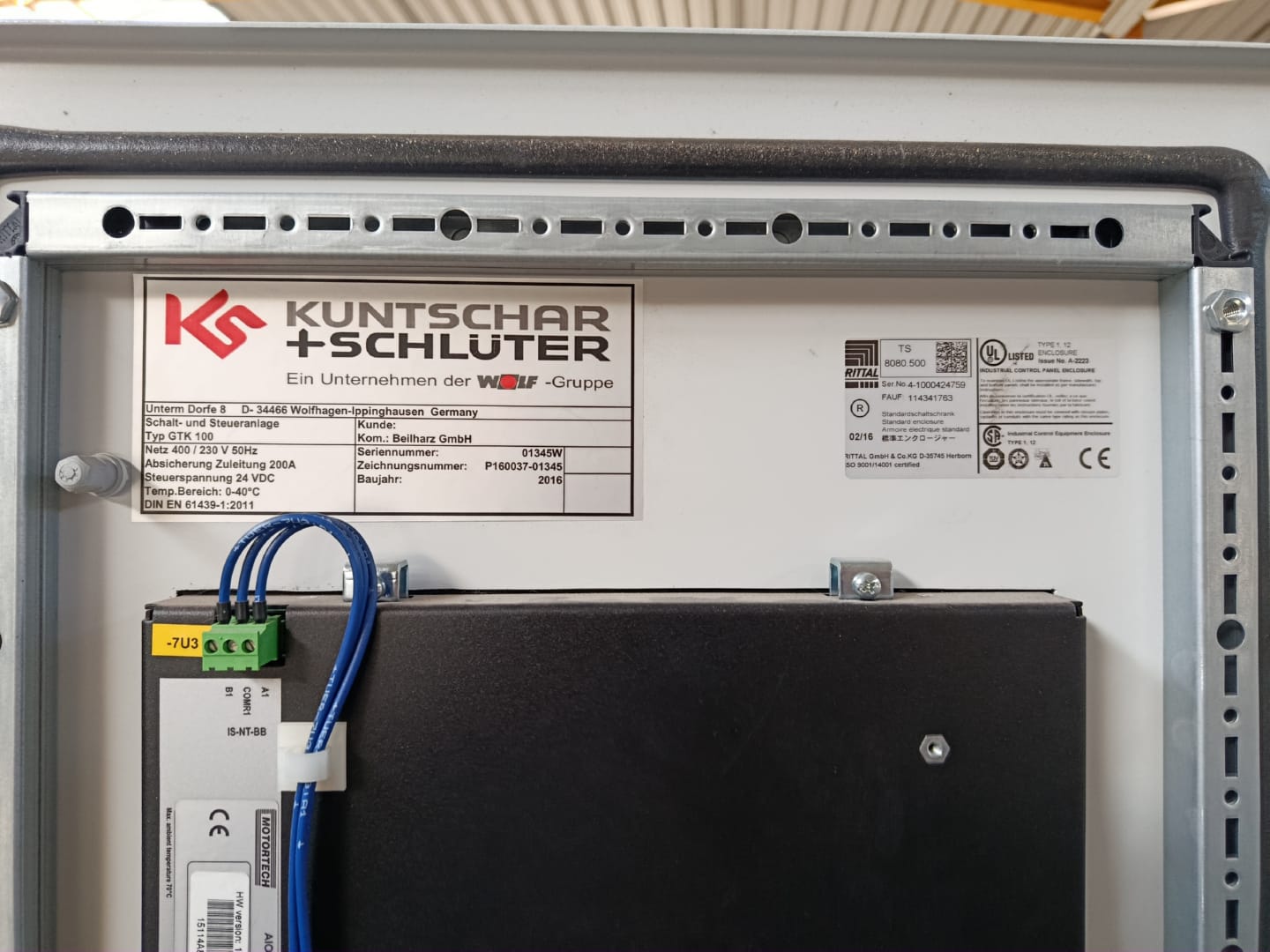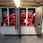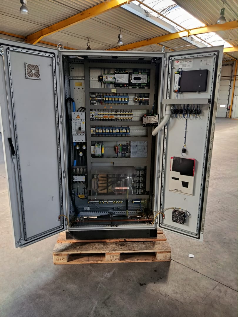 mit Schaltschrank und Schalldämpfer.