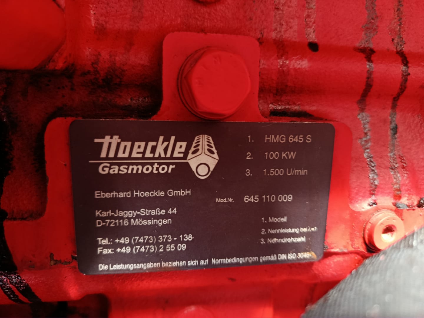 94 KWel x 1.500 U/min, 400 V / 50 Hz.