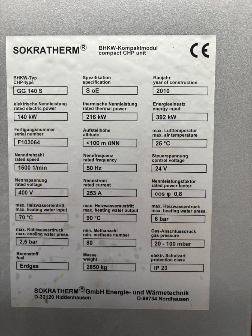 Gas Strom- und Wärmerzeuger von 2010, mit ca. 60.000 Betriebsstunden,