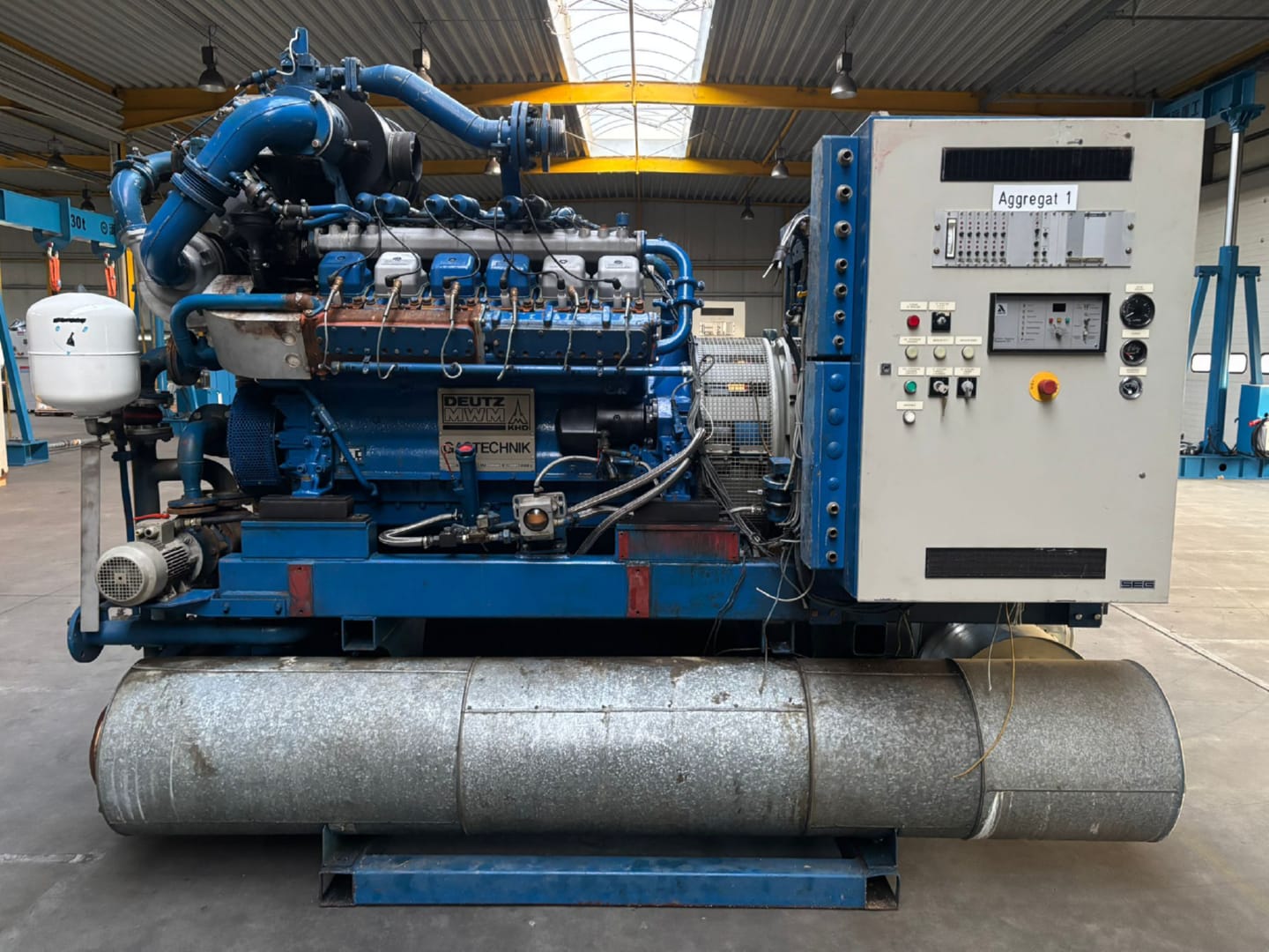 Gas Strom- und Wärmeerzeuger von 1999 mit unbekannten Betriebsstunden. 50 KWel x 1.500 U/min, 400 V/50 Hz. 4.900 €