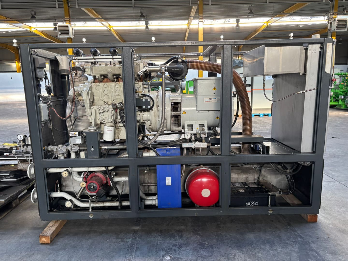 Erdgas Strom- und Wärmeerzeuger von 2014 mit unbekannten Betriebsstunden. 132 KWel x 1.500 U/min, 400 V/50 Hz. Preis: 14.900 €