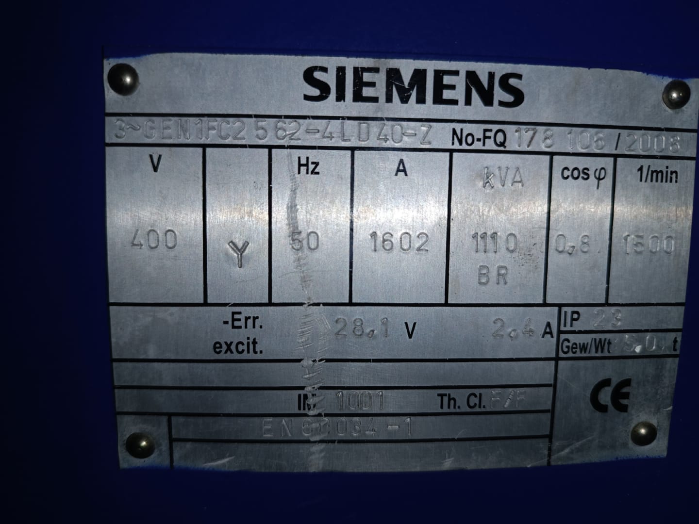AC-Generator: Siemens GEN1FC2 5 62-4LD40-Z, 1.110 KVA