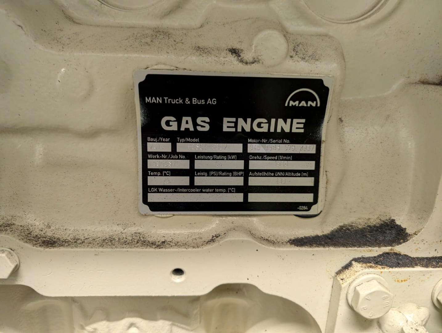 50 KWel x 1.500 U/min, 400 V/50 Hz.