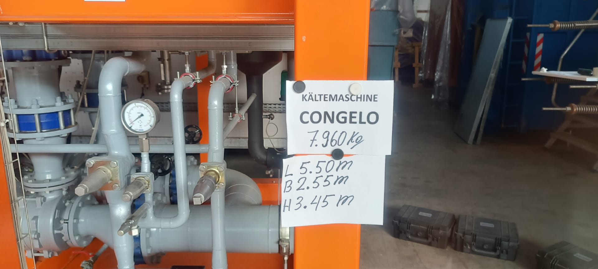 Ammonia 370 kg, water 290 kg, 16 bar, 680 kW cooling capacity