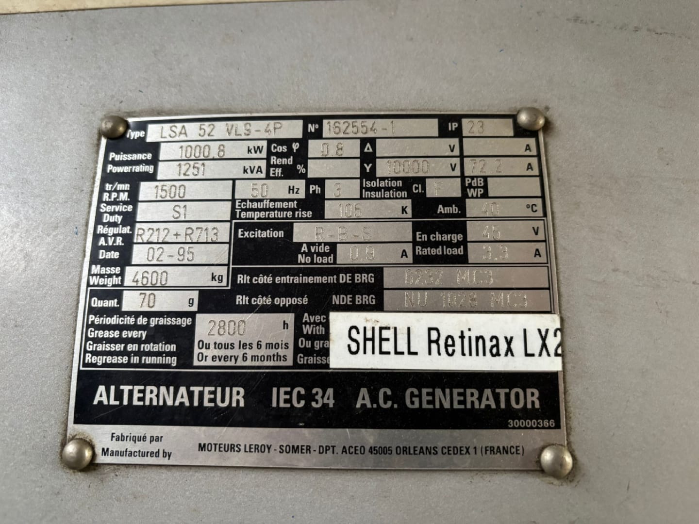 AC generator: Leroy Somer LSA 52 VLS-4P, 1,251 KVA