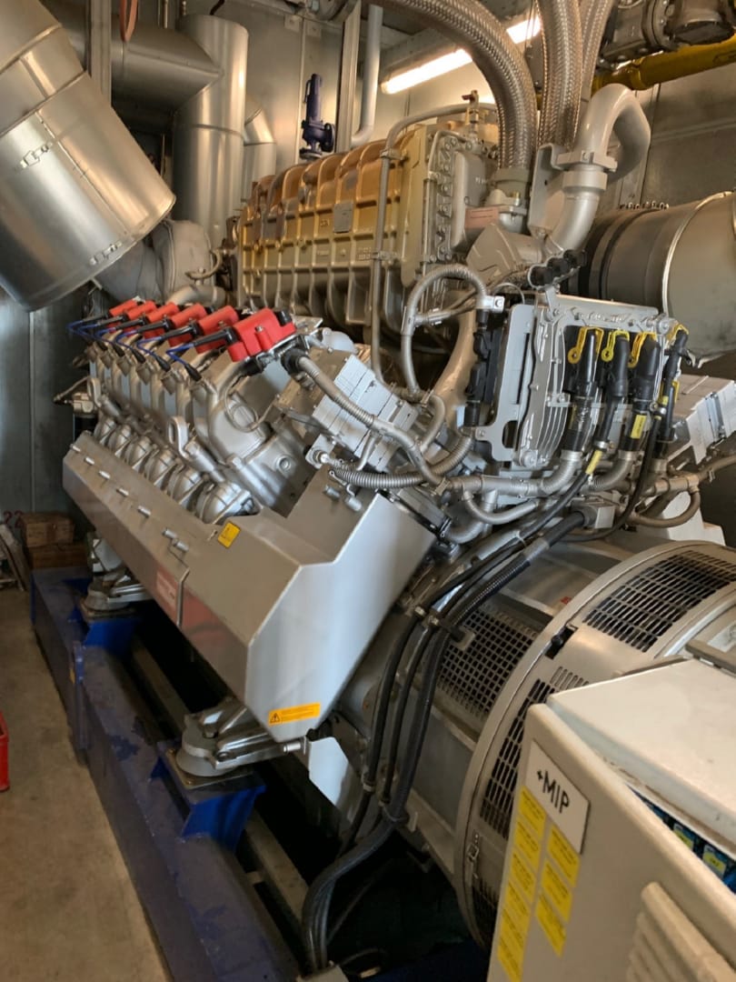 Erdgas Strom- und Wärmeerzeuger von 2001 mit unbekannten Betriebsstunden. 173 KWel x 1.500 U/min, 400 V/50 Hz. Preis: auf Nachfrage